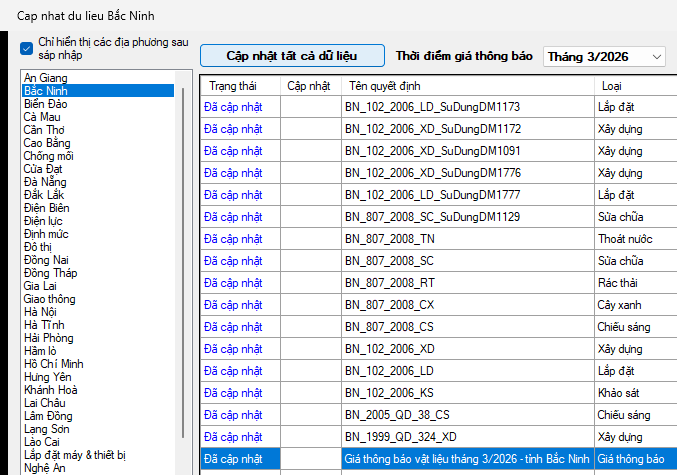 Phần mềm Dự toán F1 đã đăng tải toàn bộ dữ liệu giá thông báo vật liệu kèm theo công bố trên cho cả bản thương mại và bản miễn phí. Mọi người nhanh chóng cập nhật về để sử dụng nhé!