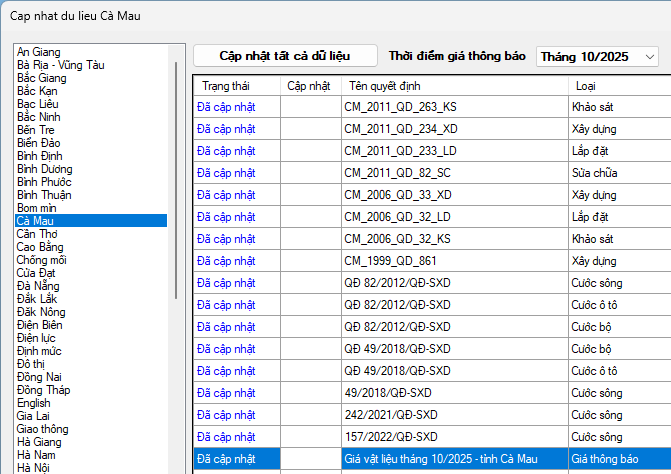 Phần mềm Dự toán F1 đã đăng tải toàn bộ dữ liệu giá thông báo vật liệu kèm theo công bố trên cho cả bản thương mại và bản miễn phí. Mọi người nhanh chóng cập nhật về để sử dụng nhé!