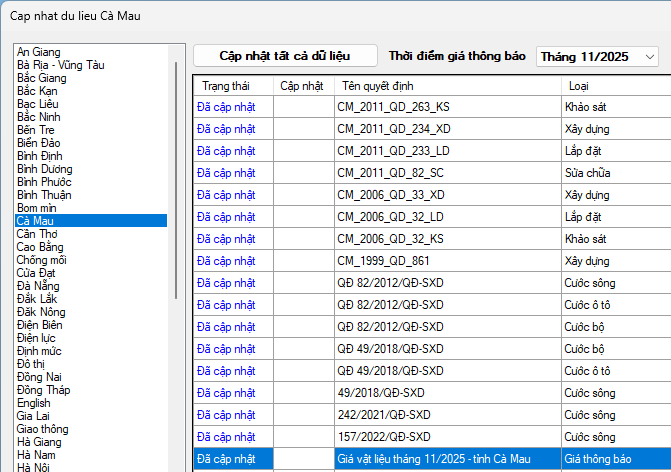 Phần mềm Dự toán F1 đã đăng tải toàn bộ dữ liệu giá thông báo vật liệu kèm theo công bố trên cho cả bản thương mại và bản miễn phí. Mọi người nhanh chóng cập nhật về để sử dụng nhé!