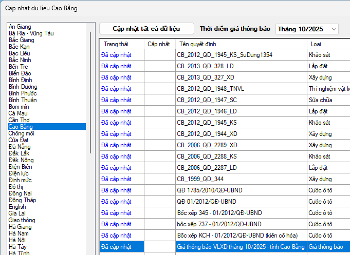 Ngày 28/10/2025, Sở Xây dựng tỉnh Cao Bằng ban hành Công bố số 4539/SXD-KTVLXD. Giá gốc vật liệu xây dựng chủ yếu trên địa bàn tỉnh Cao Bằng thời điểm tháng 10 năm 2025.