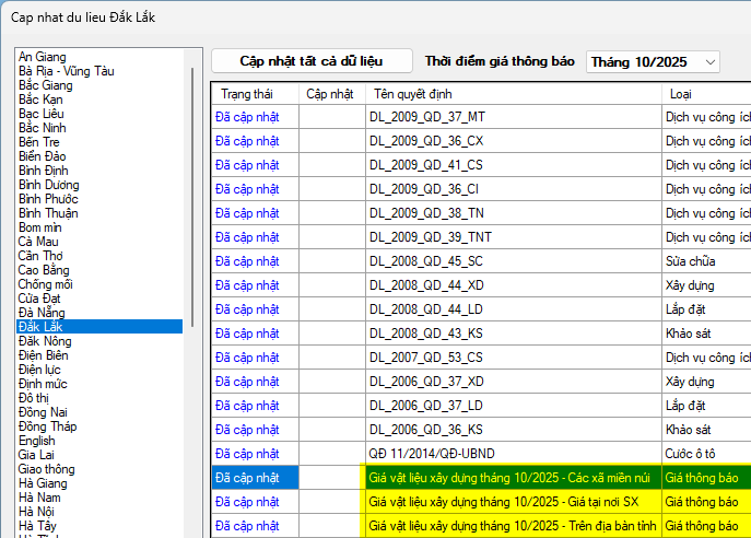 Phần mềm Dự toán F1 đã đăng tải toàn bộ dữ liệu giá thông báo vật liệu kèm theo công bố trên cho cả bản thương mại và bản miễn phí. Mọi người nhanh chóng cập nhật về để sử dụng nhé!