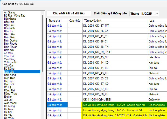 Phần mềm Dự toán F1 đã đăng tải toàn bộ dữ liệu giá thông báo vật liệu kèm theo công bố trên cho cả bản thương mại và bản miễn phí. Mọi người nhanh chóng cập nhật về để sử dụng nhé!