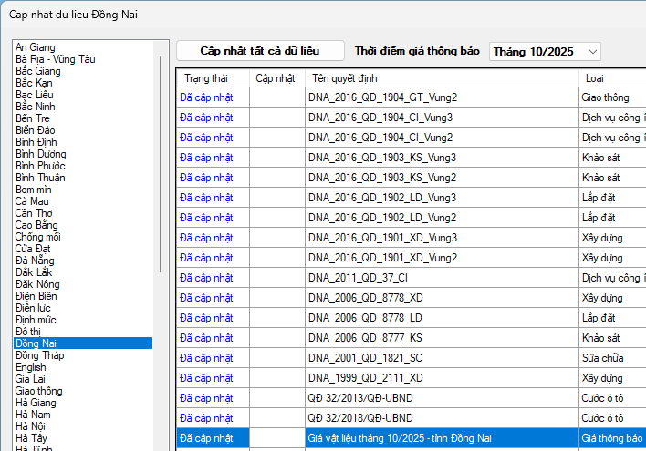 Giá vật liệu xây dựng trên địa tỉnh Đồng Nai thời điểm tháng 10 năm 2025: Làm cơ sở để chủ đầu tư sử dụng tham khảo trong việc và quản lý chi phí đầu tư xây dựng trên địa tỉnh Đồng Nai.