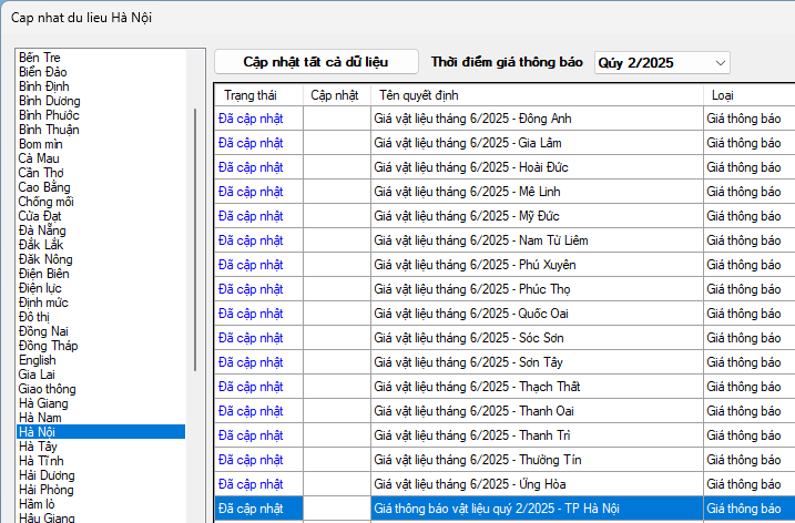 Phần mềm Dự toán F1 đã đăng tải toàn bộ dữ liệu giá thông báo vật liệu kèm theo công bố trên cho cả bản thương mại và bản miễn phí. Mọi người nhanh chóng cập nhật về để sử dụng nhé!