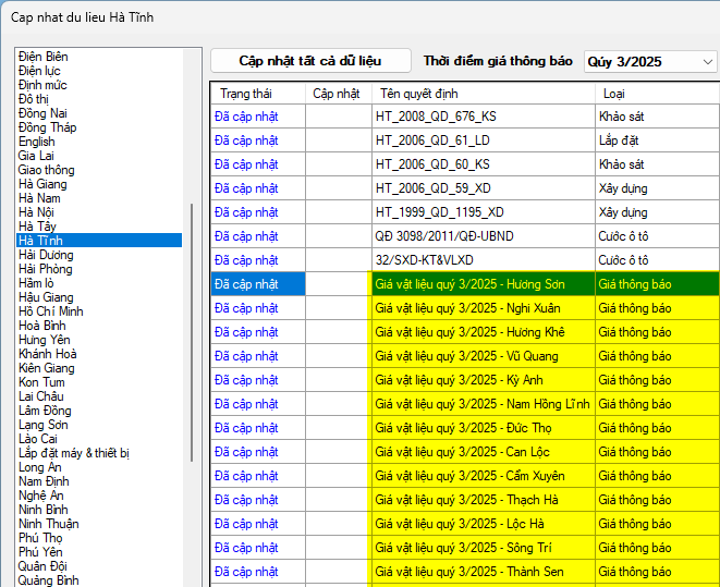 Phần mềm Dự toán F1 đã đăng tải toàn bộ dữ liệu giá thông báo vật liệu kèm theo công bố trên cho cả bản thương mại và bản miễn phí. Mọi người nhanh chóng cập nhật về để sử dụng nhé!