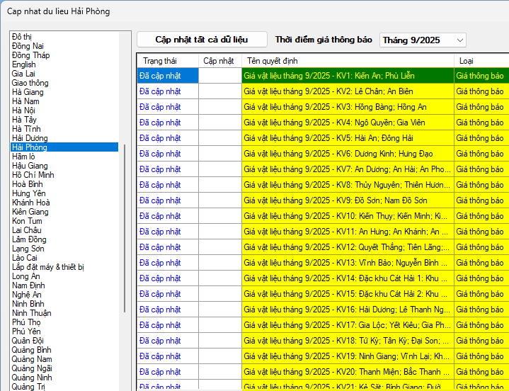 Hải Phòng – Giá vật liệu tháng 9 năm 2025