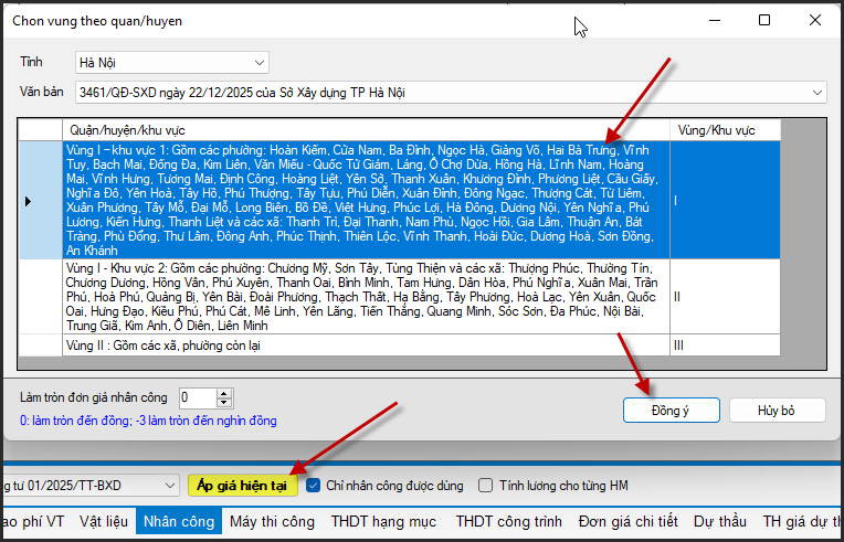 Chọn Vùng – khu vực/Đồng ý/Áp giá hiện tại