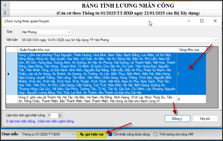 Chọn Vùng/Đồng ý/Áp giá hiện tại