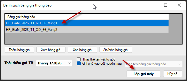 Sau đó chọn Vùng theo QĐ 66 => Lắp giá máy