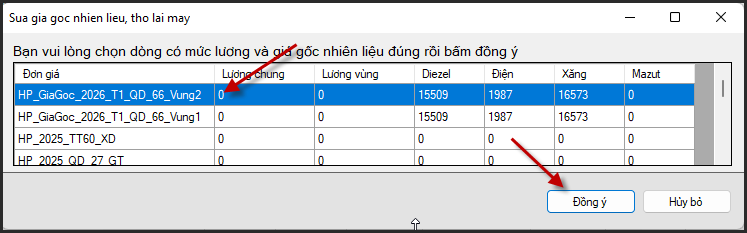 Chọn giá gốc theo Vùng của quyết định giá ca máy 66/Đồng ý