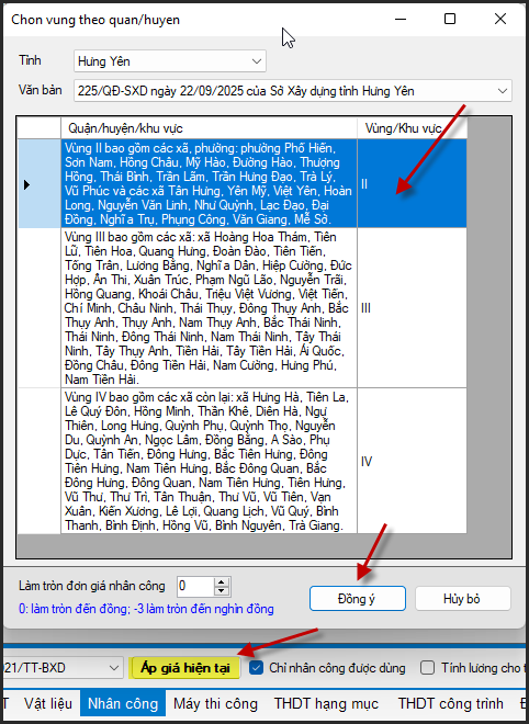 Chọn Vùng/Đồng ý/Áp giá hiện tại