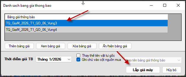 Sau đó chọn Vùng theo QĐ 06 => Lắp giá máy