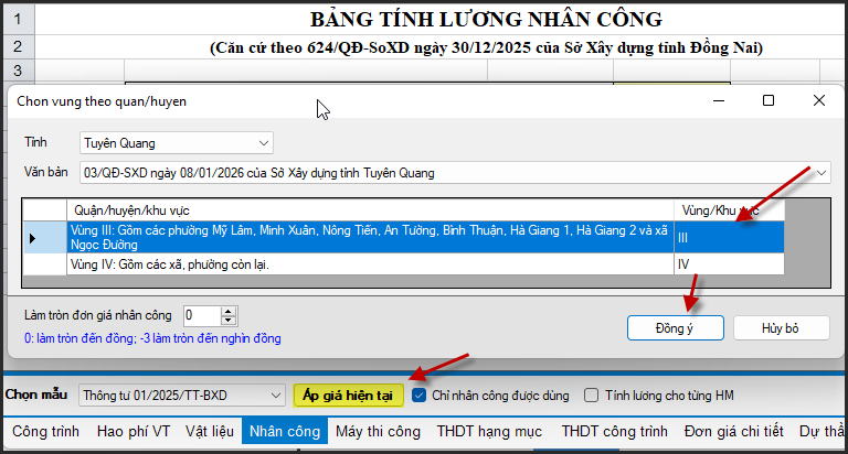 HDSD Tuyên Quang: giá nhân công 03/QĐ-SXD; giá ca máy 06/QĐ-SXD năm 2026
