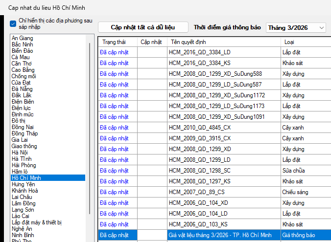 Phần mềm Dự toán F1 đã đăng tải toàn bộ dữ liệu giá thông báo vật liệu kèm theo công bố trên cho cả bản thương mại và bản miễn phí. Mọi người nhanh chóng cập nhật về để sử dụng nhé!
