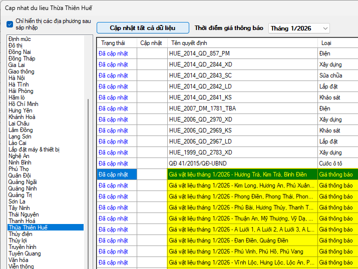 Ngày 06/02/2026, Liên Sở Xây dựng – Tài chính Thành phố Huế ban hành Công bố số 776/LSXD-TC. Về việc công bố giá vật liệu xây dựng tháng 1 năm 2026 trên địa bàn Thành phố Huế.