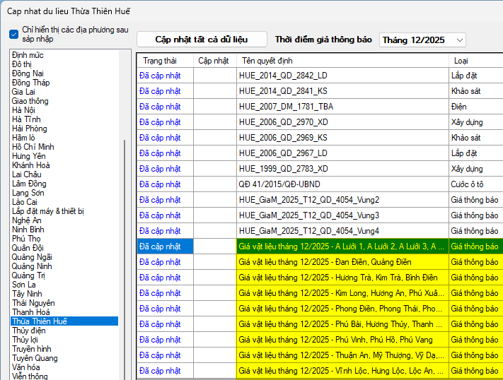 Phần mềm Dự toán F1 đã đăng tải toàn bộ dữ liệu giá thông báo vật liệu kèm theo công bố trên cho cả bản thương mại và bản miễn phí. Mọi người nhanh chóng cập nhật về để sử dụng nhé!