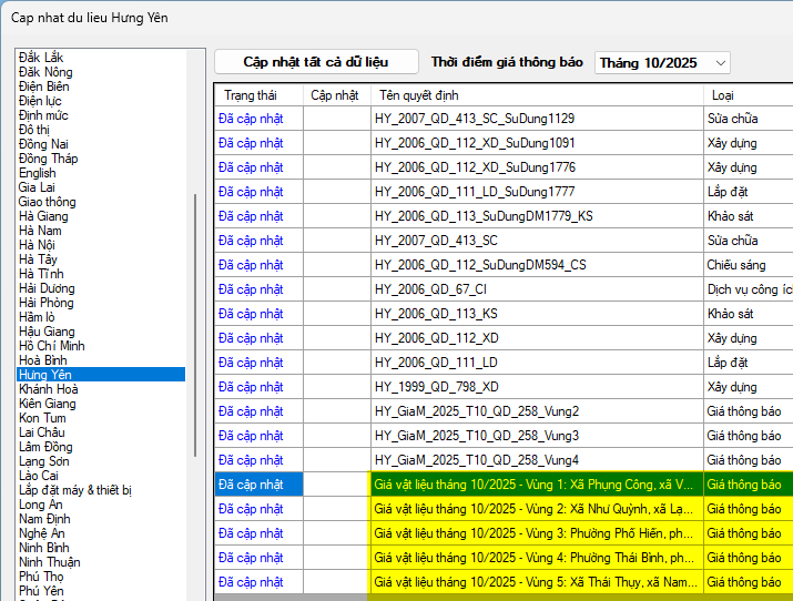 Phần mềm Dự toán F1 đã đăng tải toàn bộ dữ liệu giá thông báo vật liệu kèm theo công bố trên cho cả bản thương mại và bản miễn phí. Mọi người nhanh chóng cập nhật về để sử dụng nhé!