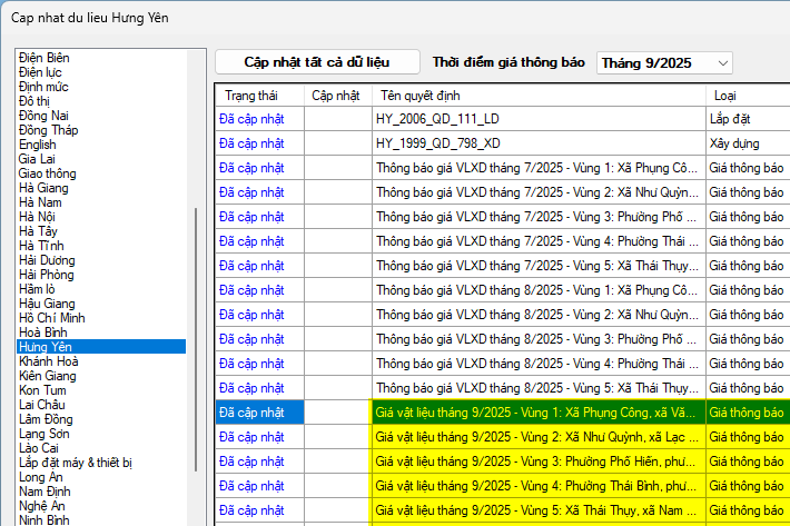 Phần mềm Dự toán F1 đã đăng tải toàn bộ dữ liệu giá thông báo vật liệu kèm theo công bố trên cho cả bản thương mại và bản miễn phí. Mọi người nhanh chóng cập nhật về để sử dụng nhé!