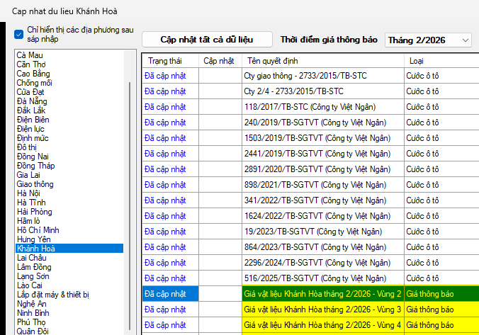 Phần mềm Dự toán F1 đã đăng tải toàn bộ dữ liệu giá thông báo vật liệu kèm theo công bố trên cho cả bản thương mại và bản miễn phí. Mọi người nhanh chóng cập nhật về để sử dụng nhé!