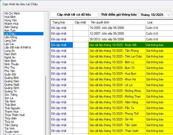 Lai Châu – Giá vật liệu tháng 10 năm 2025