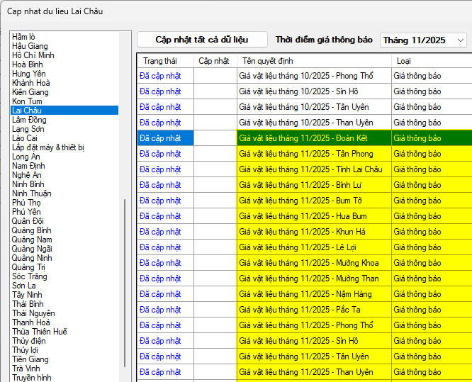 Phần mềm Dự toán F1 đã đăng tải toàn bộ dữ liệu giá thông báo vật liệu kèm theo công bố trên cho cả bản thương mại và bản miễn phí. Mọi người nhanh chóng cập nhật về để sử dụng nhé!