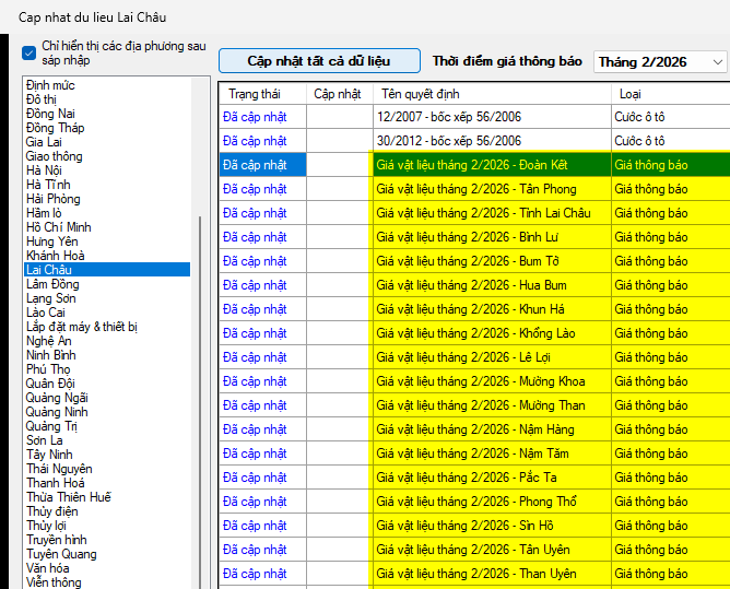 Phần mềm Dự toán F1 đã đăng tải toàn bộ dữ liệu giá thông báo vật liệu kèm theo công bố trên cho cả bản thương mại và bản miễn phí. Mọi người nhanh chóng cập nhật về để sử dụng nhé!