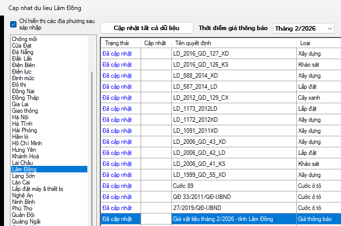 Phần mềm Dự toán F1 đã đăng tải toàn bộ dữ liệu giá thông báo vật liệu kèm theo công bố trên cho cả bản thương mại và bản miễn phí. Mọi người nhanh chóng cập nhật về để sử dụng nhé!