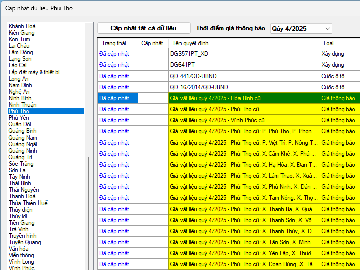 Phần mềm Dự toán F1 đã đăng tải toàn bộ dữ liệu giá thông báo vật liệu kèm theo công bố trên cho cả bản thương mại và bản miễn phí. Mọi người nhanh chóng cập nhật về để sử dụng nhé!