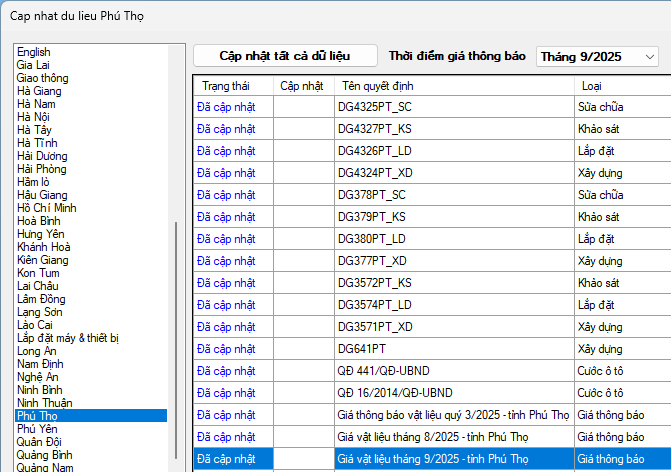 Phần mềm Dự toán F1 đã đăng tải toàn bộ dữ liệu giá thông báo vật liệu kèm theo công bố trên cho cả bản thương mại và bản miễn phí. Mọi người nhanh chóng cập nhật về để sử dụng nhé!