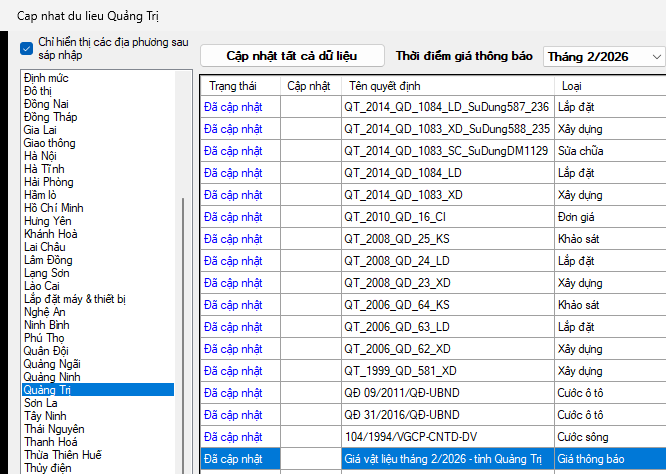 Quảng Trị – Giá vật liệu tháng 2 năm 2026