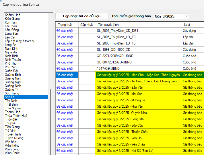 Phần mềm Dự toán F1 đã đăng tải toàn bộ dữ liệu giá thông báo vật liệu kèm theo công bố trên cho cả bản thương mại và bản miễn phí. Mọi người nhanh chóng cập nhật về để sử dụng nhé!