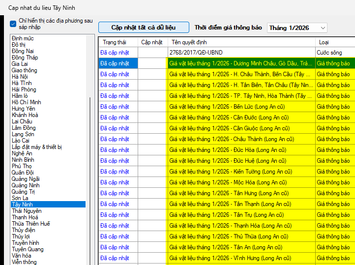 Phần mềm Dự toán F1 đã đăng tải toàn bộ dữ liệu giá thông báo vật liệu kèm theo công bố trên cho cả bản thương mại và bản miễn phí. Mọi người nhanh chóng cập nhật về để sử dụng nhé!