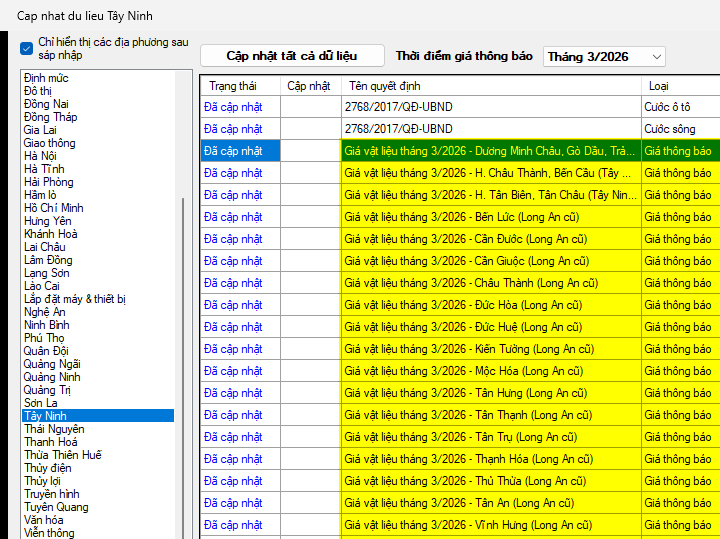Phần mềm Dự toán F1 đã đăng tải toàn bộ dữ liệu giá thông báo vật liệu kèm theo công bố trên cho cả bản thương mại và bản miễn phí. Mọi người nhanh chóng cập nhật về để sử dụng nhé!